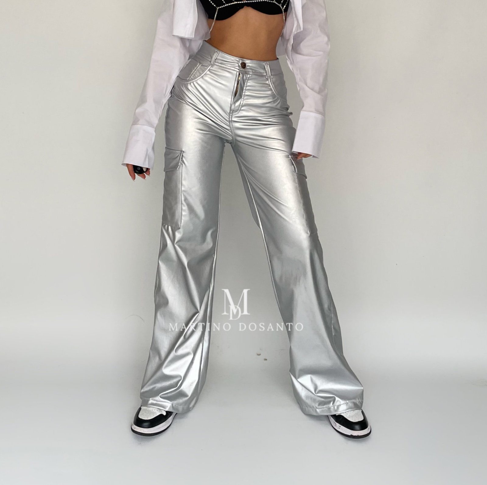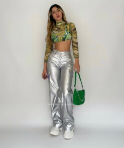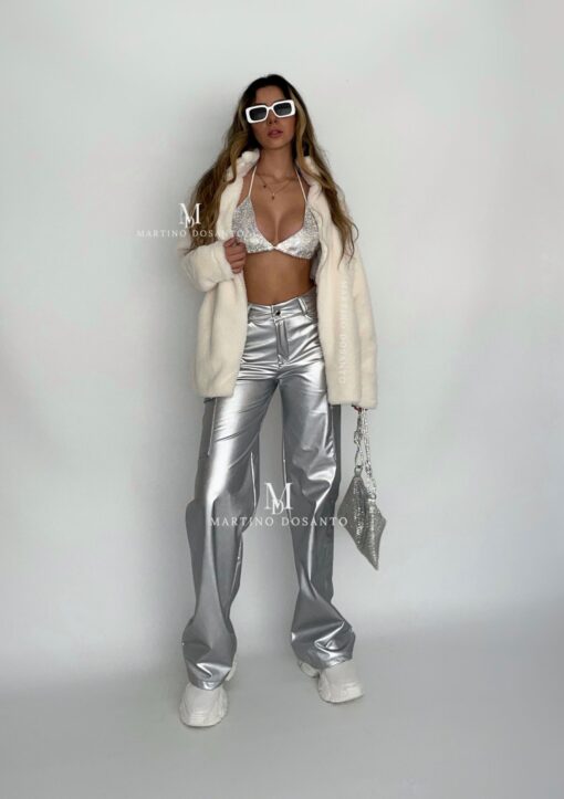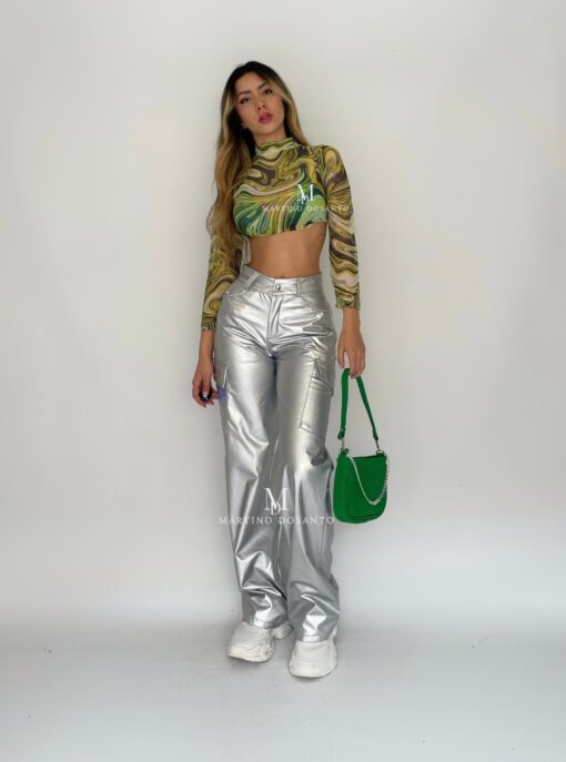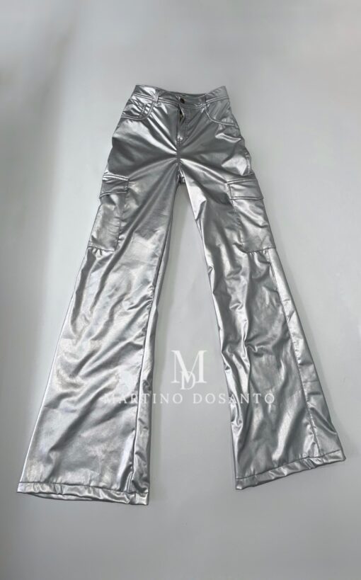 Pantalón metalizado cuerina Plata P1